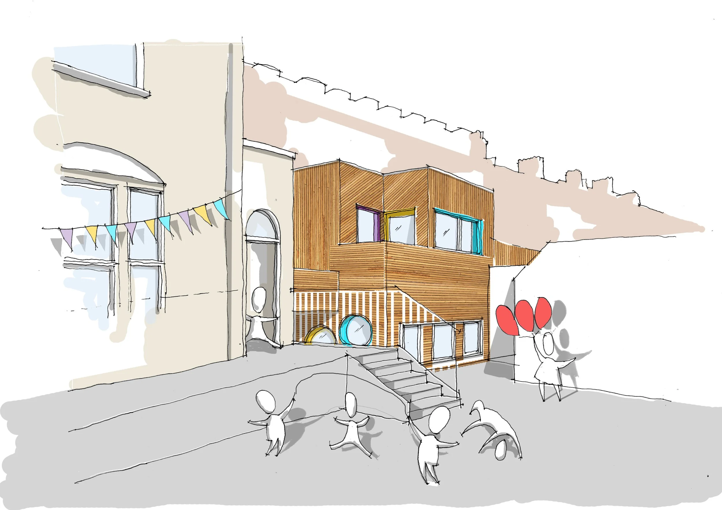 The wider scheme seeks to strengthen the relationship between the Grade II listed primary school and the neighbouring nursery, creating a more connected early-years community. A new bridge link physically unites the two, enabling resources, facilities and outdoor spaces to be shared more actively.