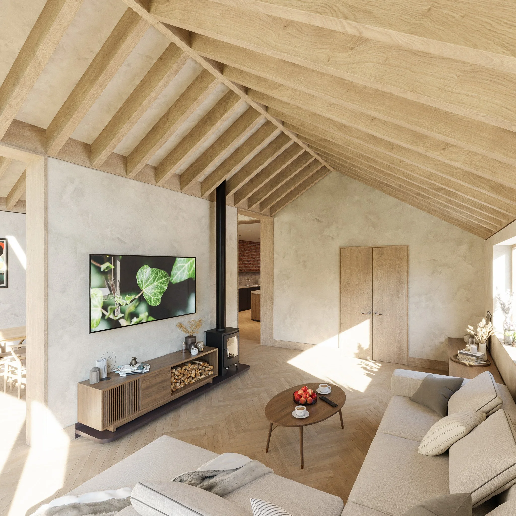 Ridgeway is an example of the way we seek to respect the character of each site’s inherent architecture while reimagining it for the future. Two new dual-pitched volumes reinterpret the house’s lineage, using form, proportion, and materiality to create a contemporary expression that remains firmly grounded in its context. Exposed natural materials and a timber-frame structure bring warmth and clarity to the interiors, while Passivhaus-led thermal standards ensure a low-energy build that honours the past while preparing the house for generations to come.